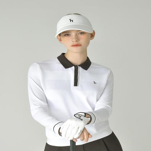 헤지스 골프 여성 화이트 여성 스트라이프 자카드 블루종 카라 티셔츠 (HWTS5C615OW)