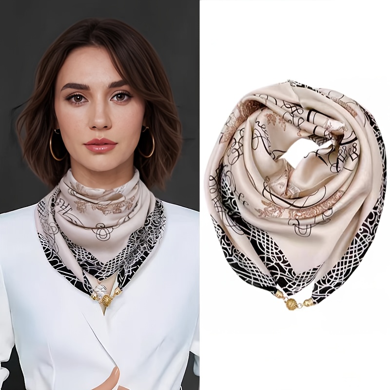 TEMU 우아한 여성 패션 스카프, 장식용 프린트 숄, 통기성 넥 랩, 다기능 헤드 스카프, 주말 레저를 위한 세련된 액세서리 - 깃털 없음, 손세탁 - 여성에게 훌륭한 선물 선택