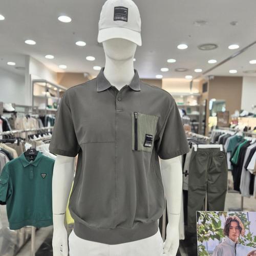 [챌린저]남성 허니콤 조직 포켓 디테일 카라 반팔 티셔츠 카키_CHE2MST5234KH_IC