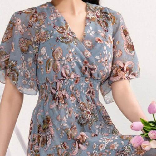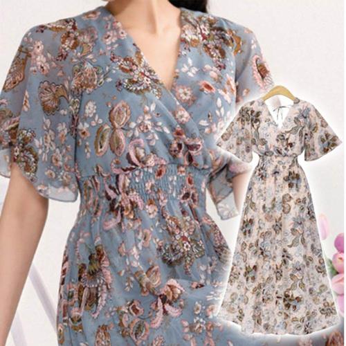 [모노무드]모노무드 여름 휴가 쉬폰 원피스 허리밴딩 꽃무늬 롱랩원피스