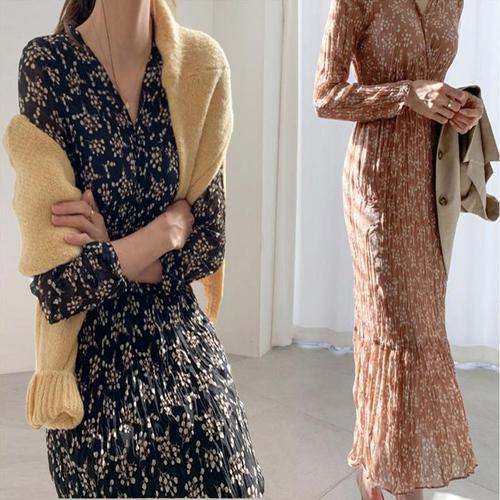 [셀러허브_여성트랜드패션]Rly 허리밴딩 꽃무늬 가벼운 데일리 롱랩 원피스