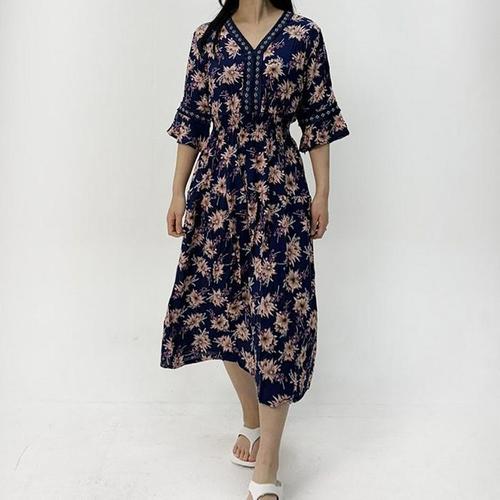 [셀러허브_여성트랜드패션]ONM 허리밴딩 꽃무늬 가벼운 데일리 롱랩 원피스