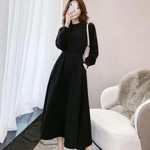 여성 허리 밴딩 긴팔 데일리 롱 원피스