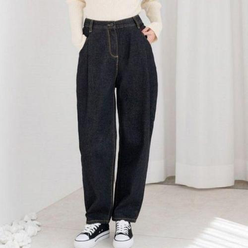 [에이치플러스몰]데님 넉넉한 허리 청바지 잘록 오버 스판 배기핏 하의