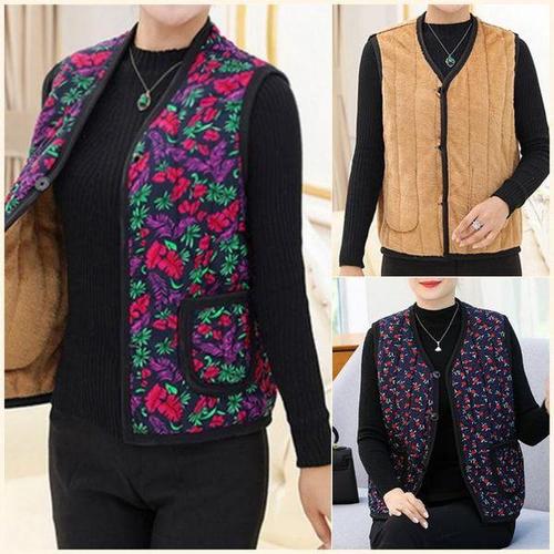 [셀러허브_여성트랜드패션]조끼 인조무스탕 기모 꽃무늬 보온 베스트 엄마선물