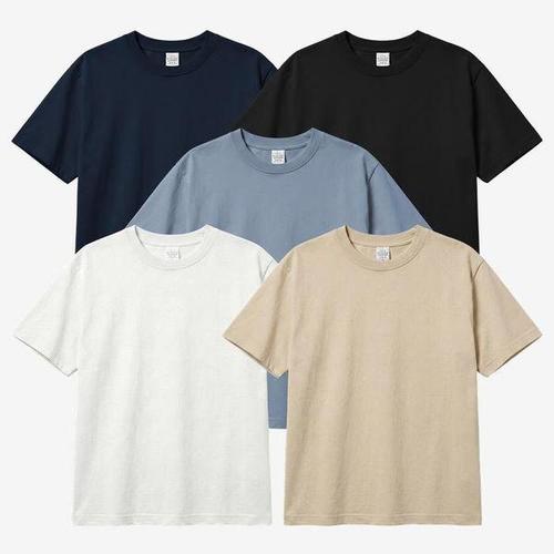 베이지 300g 헤비급 코튼 반팔 티셔츠 여름 라운드 넥 루즈 및 베이스 셔츠 남성용 여성용 기본 티