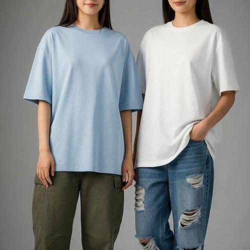 면 반팔 탑스 220그램 헤비 티셔츠 Y2k 캐주얼 편안한 티셔츠 블랙 & 화이트 O넥 여성 의류 YH2532