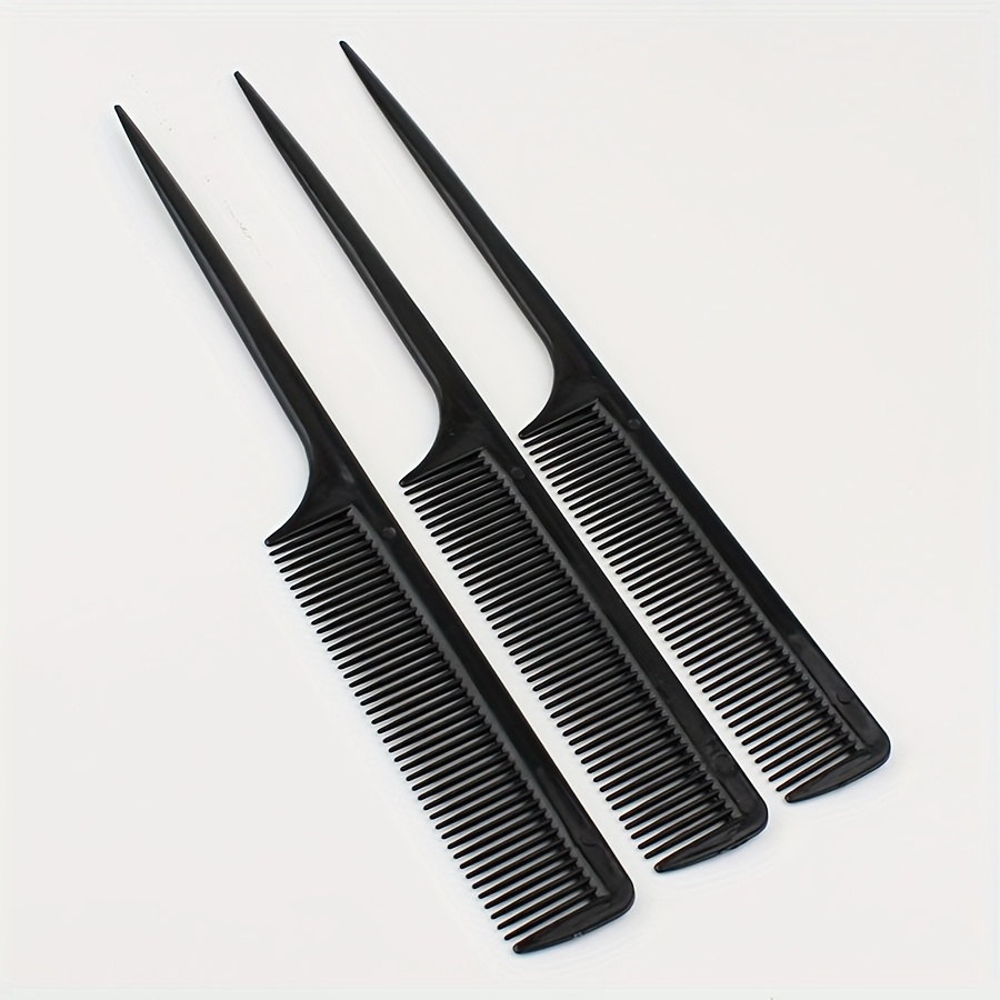 TEMU 가정용 블랙 플라스틱 뾰족한 꼬리 빗, 밀도 높은 이빨 브레이딩 뾰족한 빗, 전문 미용 및 헤어드레싱 빗