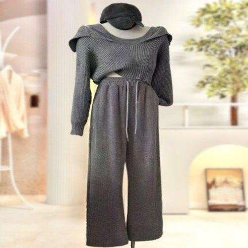 [스타일리쉬바이피클]데일리 니트 와이드 팬츠 쓰리피스 세트