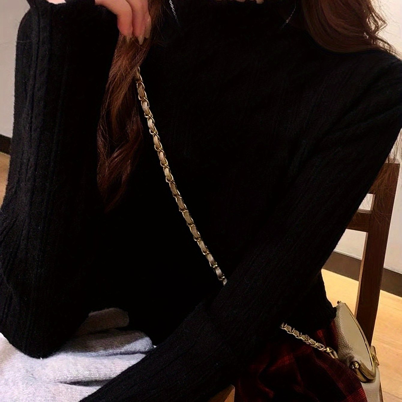 TEMU 새로운 가을/겨울 단색 터틀넥 긴팔 탑, 세련되고 다재다능하며 출퇴근에 적합한 고급스러운 여성 의상