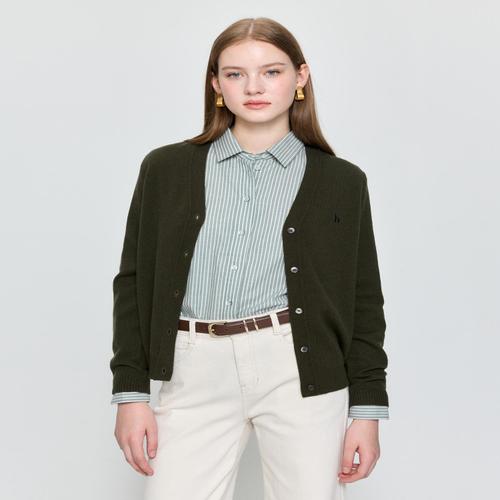 헤지스 여성 캐시미어 블렌디드 V넥 가디건 카키 (HSSW5D901K2)