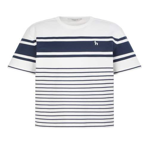 헤지스 골프 여성 25SS ONLINE EXCLUSIVE 네이비 여성 스트라이프 반팔 티셔츠 HWTS5B901N2