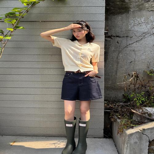 헤지스 여성 네이비 워싱 면혼방 데님숏팬츠 (HSPA5BS18N2)