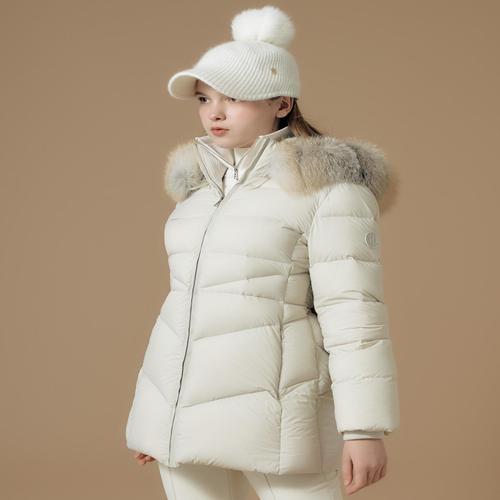 헤지스 골프 여성 크림 여성 중힙기장 후디 구스다운 점퍼 (HWJU4D811CR)
