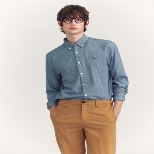 헤지스 남성 터콰이즈 솔리드 옥스포드 셔츠 (HZSH4C101T2)