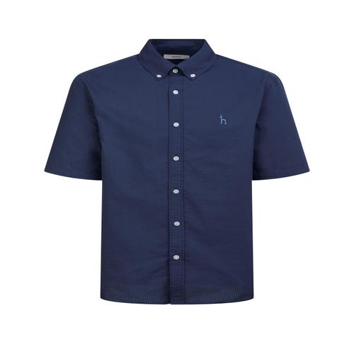 헤지스 남성 [스테디셀러] 네이비 버튼다운 면혼방 반팔캐주얼셔츠 (WHSH5B412N2)