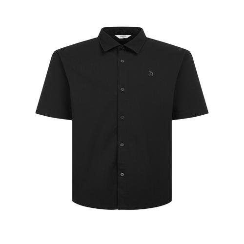 헤지스 남성 블랙 단색 면혼방 반팔캐주얼셔츠 (WHSH5B504BK)
