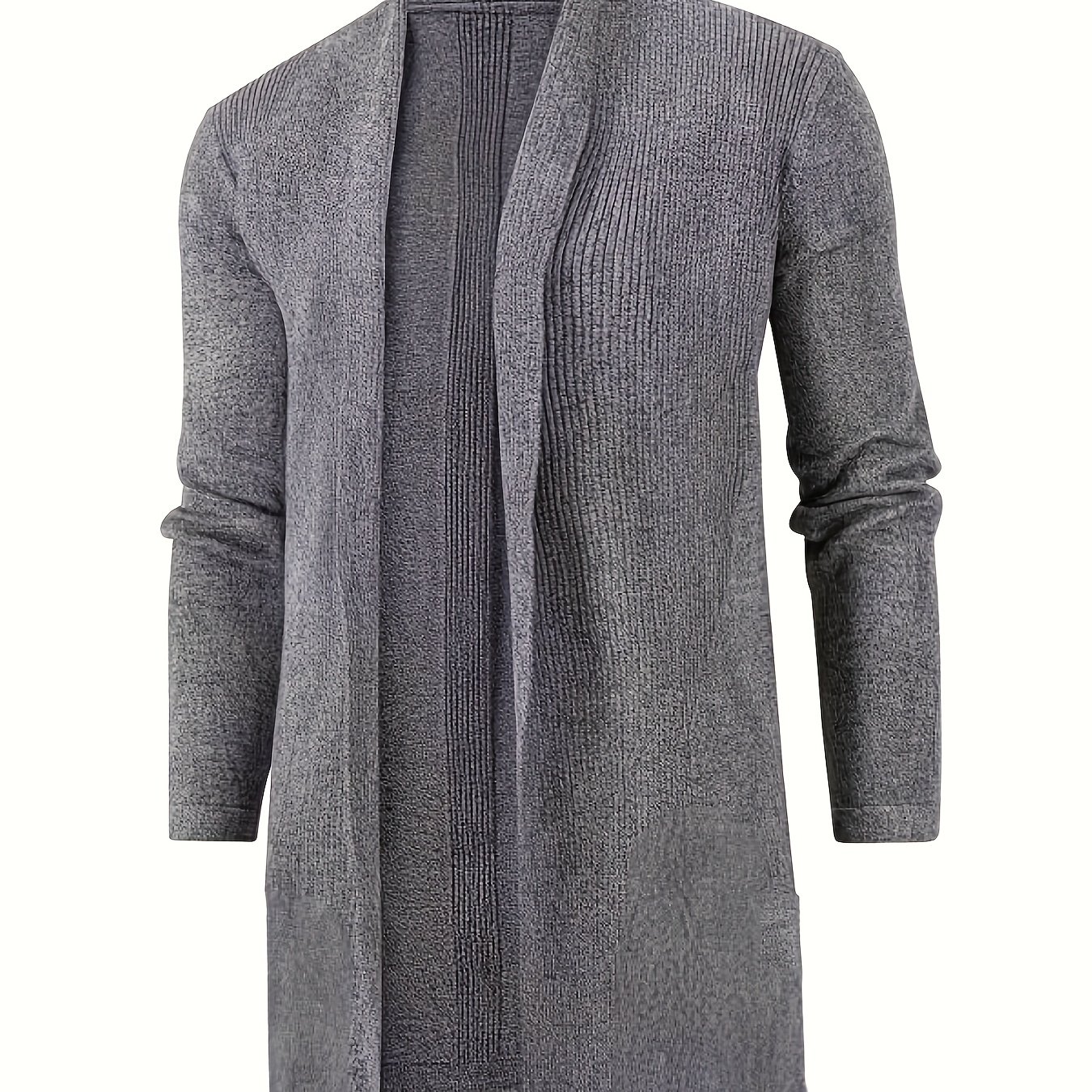 TEMU 남성용 스타일리시 그레이 니트 가디건 - 캐주얼 롱 슬리브 오픈 프론트 스웨터, 리브드 커프스, 가을/겨울 따뜻한 캐주얼 의상용 스웨터 가디건