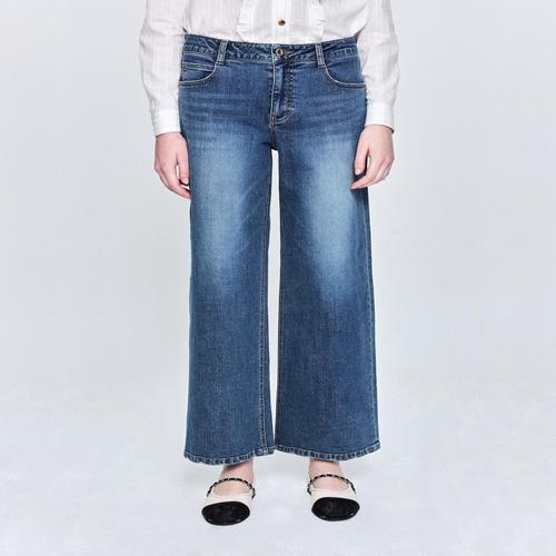 헤지스 여성 에센셜 세미와이드 데님 팬츠 페인팅블루 (HSPA5BC85B2)