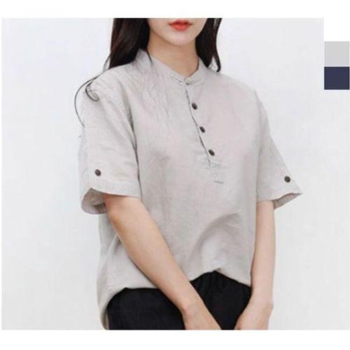 [셀러허브_여성트랜드패션]시원한 헨리넥 반팔 셔츠 캐주얼 카라 남방