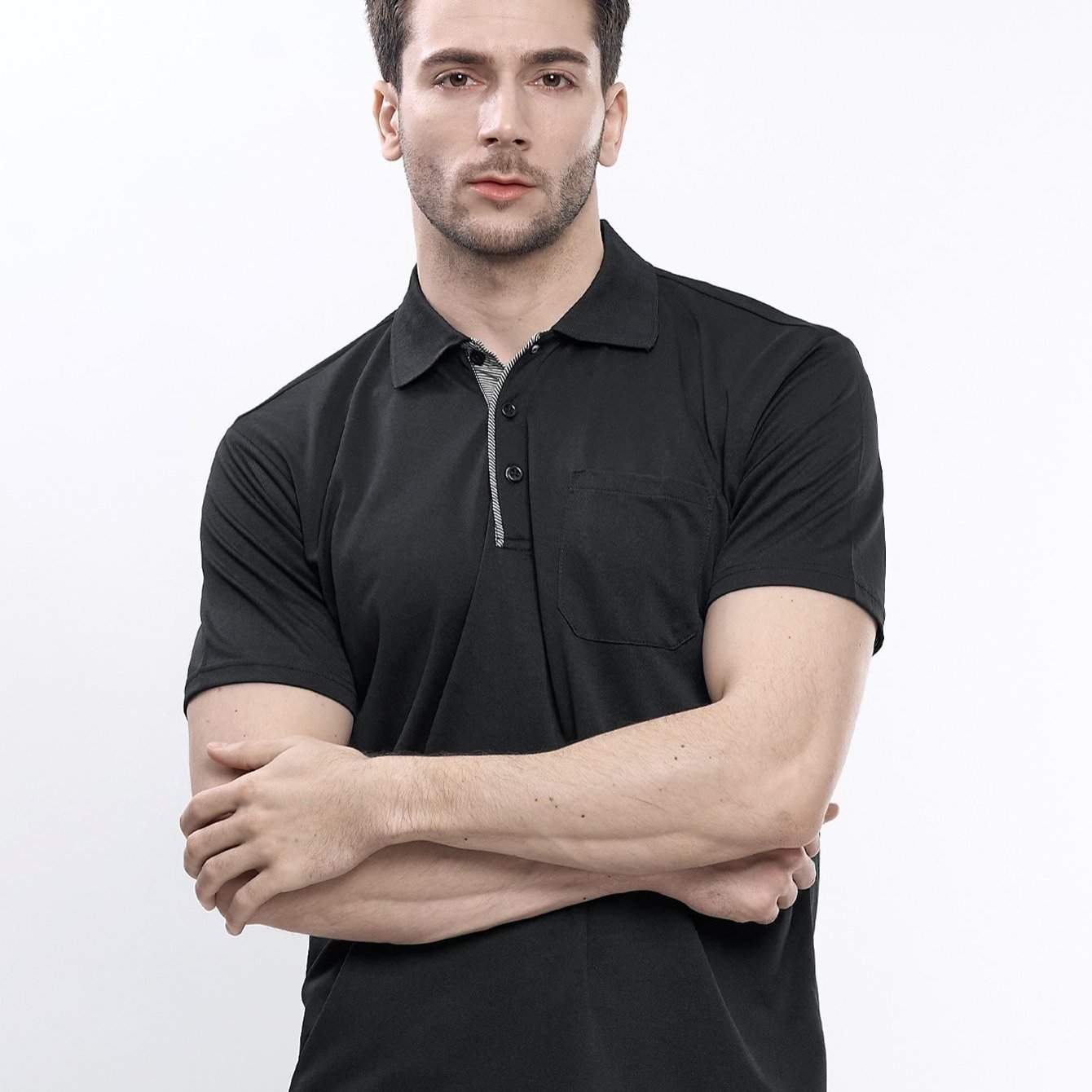 남성용 얇은 반팔티 화이트상의 쿨링 반팔 티셔츠 카라 사계절 복 트레이닝 러닝 속건 DUCHI2