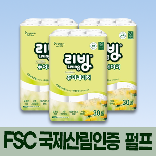 ★블랙데이★FSC인증펄프★ 삼정 리빙 퓨어네이쳐 화장지 30롤 X 3팩 (촐 90롤)