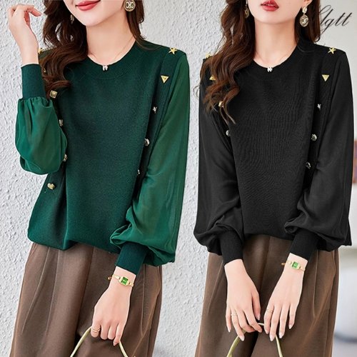 [헬리꽁땡](55~88)2종세트 실키볼륨블라우스 레이스블라우스 쉬폰블라우스 가을롱셔츠 자수셔츠 가을블라..