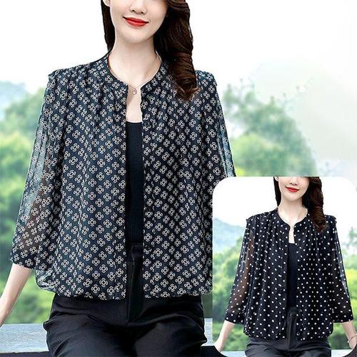[헬리꽁땡]2종세트 썬차단 도트블라우스 레이스블라우스 쉬폰블라우스 여름롱셔츠 자수셔츠 쉬폰 40대 50..