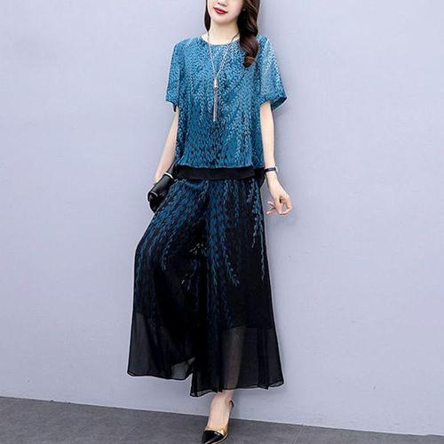 [헬리꽁땡](55~88)쉬폰벨라 치마상하세트 치마투피스 여름투피스셋업 쉬폰치마 쉬폰블라우스 40대 50대 ..