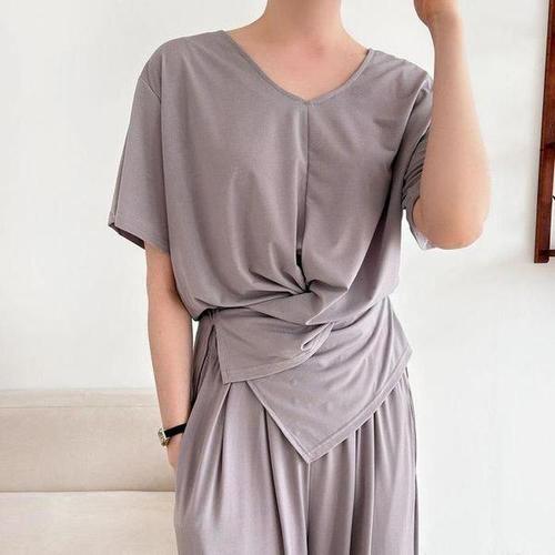 [다잇템_패션]여성 V넥 반소매 세트 셋업 쿨 고무줄 바지