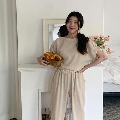 [다잇템]여자 SS 아이스 바지 반소매 고무줄 쿨 세트