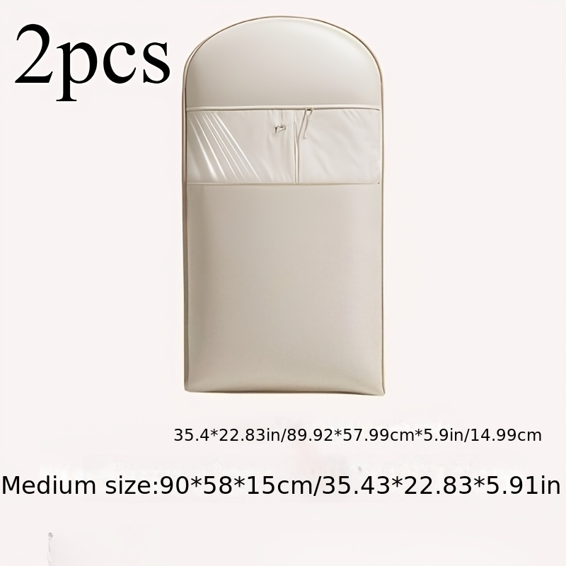 TEMU 베이지색 압축 행거백 2개 세트 (35.43/43.31/51.18인치) – 공간 절약형 진공 밀봉 디자인으로 공간 40% 절약. 다운 재킷 및 겨울 의류에 이상적. 투명하고 고급스러운 보관, 내구성 있는 지퍼. 크리스마스 필수 선물