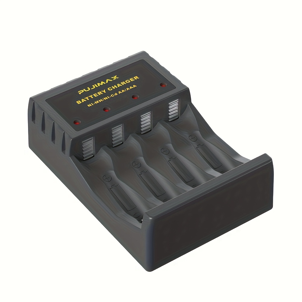 TEMU PUJIMAX 4슬롯 니켈-수소 니켈-카드뮴 배터리 충전기, LED 표시등으로 충전 중(빨간색), 완료(초록색). 독립형 충전 가능. 1.2슬롯 니켈-수소 AA/AAA 배터리 충전기. 네 개의 독립적인 슬롯, 새 및 오래된 배터리 자유 조합, 타입 제한 없음