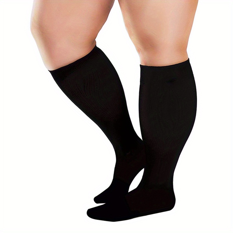 TEMU 1쌍 남녀공용 플러스 사이즈 압박 양말 - 넓은 종아리 (와이드핏), 러닝, 사이클링, 하이킹용 압박 타이츠, 플러스 사이즈 종아리 양말, 비행용 압박 양말, 와이드 앵클 압박 양말, 와이드 종아리 압박 양말