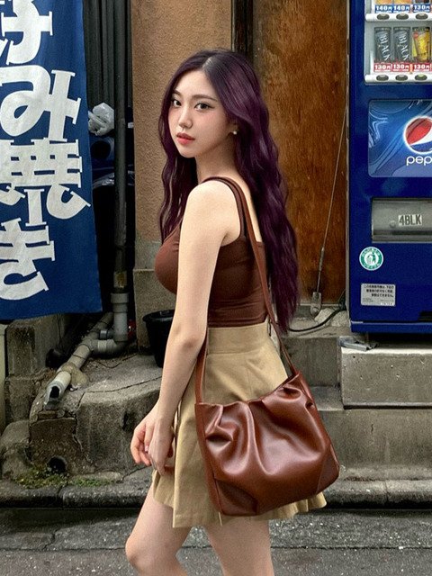 [호재] 가죽 숄더백 슬로프 호보_2컬러