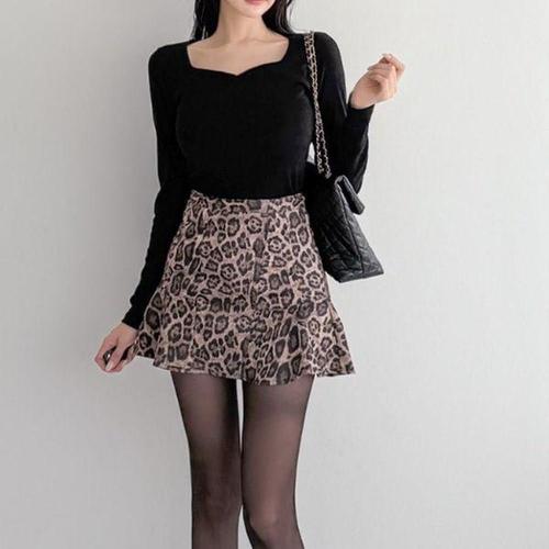 [옷자락]여성 호피패턴 플레어 미니 스커트