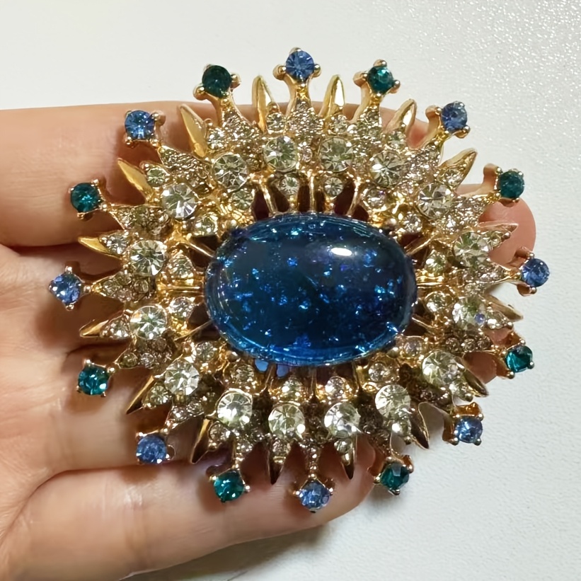 TEMU 컬러풀한 라인스톤 디자인의 우아한 빈티지 브로치. 중세 시대 파란색 물결 꽃의 느낌이 강하며, 고급스러운 프랑스 스타일의 궁정 의상에 완벽하게 어울립니다.