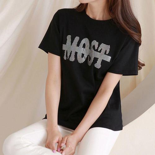 [셀럽하우스]여성 HJHO2753 홀로그램 프린트 반팔티 기본 티셔츠