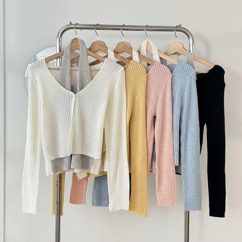 [신상오픈런]여성 봄 홀터넥 골지 나시 원버튼 파스텔 벚꽃 가디건