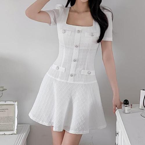 H스타일 OP)진주버튼후레아미니원피스 봄 여름 미니 원피스 OPS 홀복 드레스
