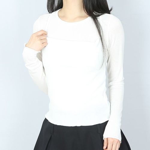 파라노말샵 / (투피스) 골지 홀터 나시 프릴 긴팔 티셔츠 세트 (파