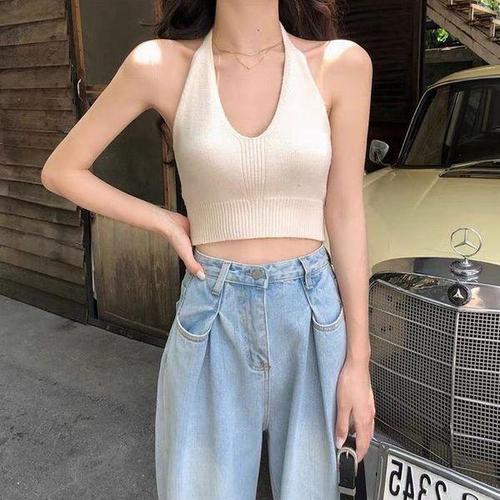 [셀러허브_여성트랜드패션]니트나시 민소매 크롭탑나시 니트 홀터넥나시 홀터넥 나시티 SD-220421 크롭탑