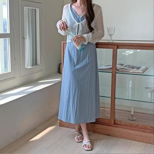 [다잇템][다잇템] 여자 롱원피스 망사 SS 빅사이즈 스트랩 카디건 세트_17939545_588872