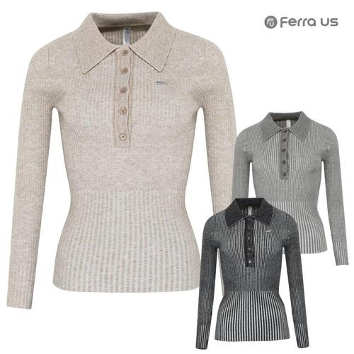 TC 페라어스 여성 버튼 빅카라 골지 골프 니트셔츠 (WFH1GKV)