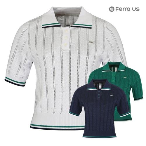 TC 페라어스 여성 꽈배기 펀칭 니트 카라 골프셔츠