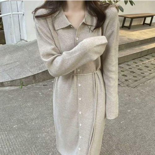 [비꼴리끄(여성)]소매니트 셔츠카라 원피스 B244WO4010
