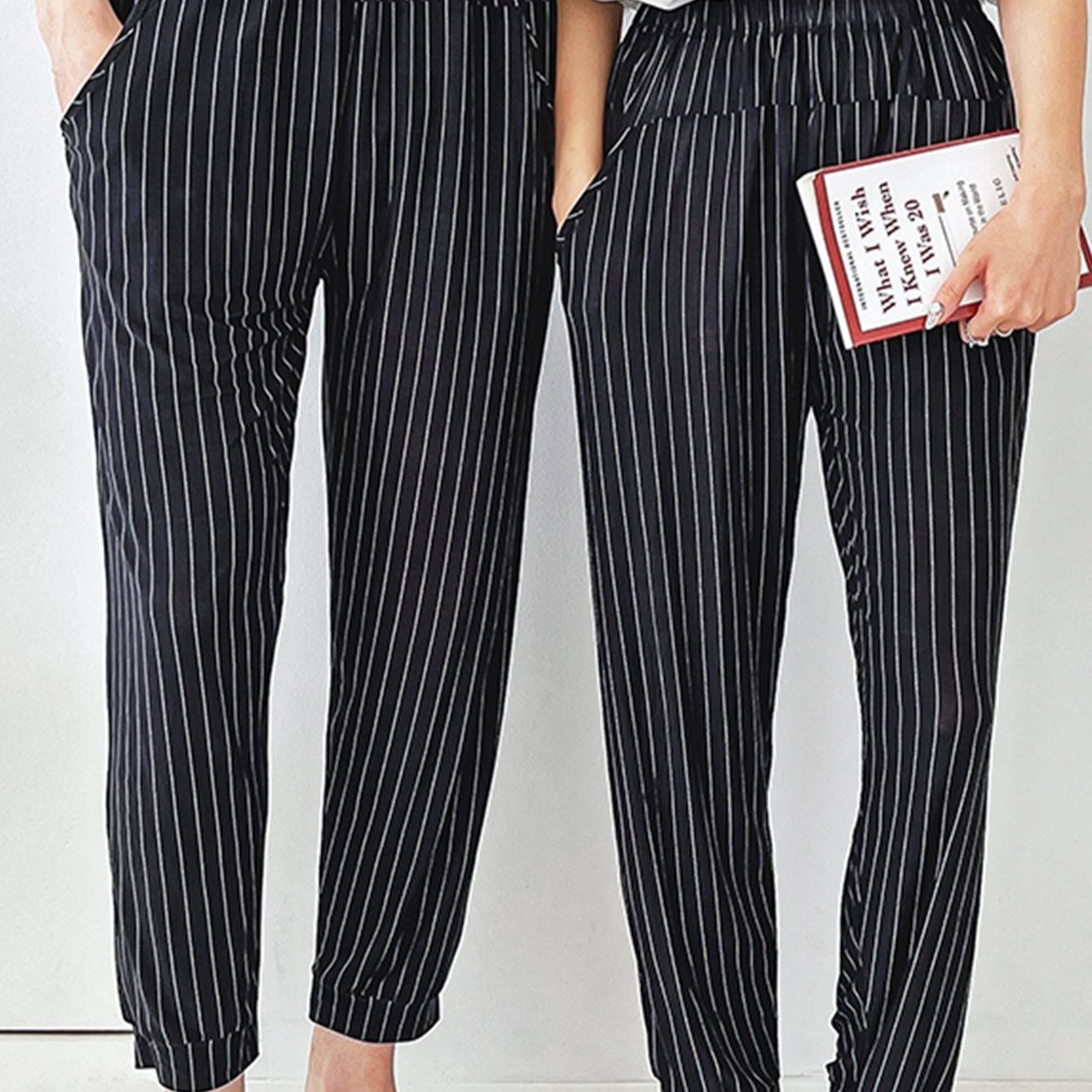 TEMU [파라고나] 여름 냉장고 팬츠 밴딩 와이드 홈웨어 남녀공용 프리사이즈 쿨팬츠_스트라이프패턴