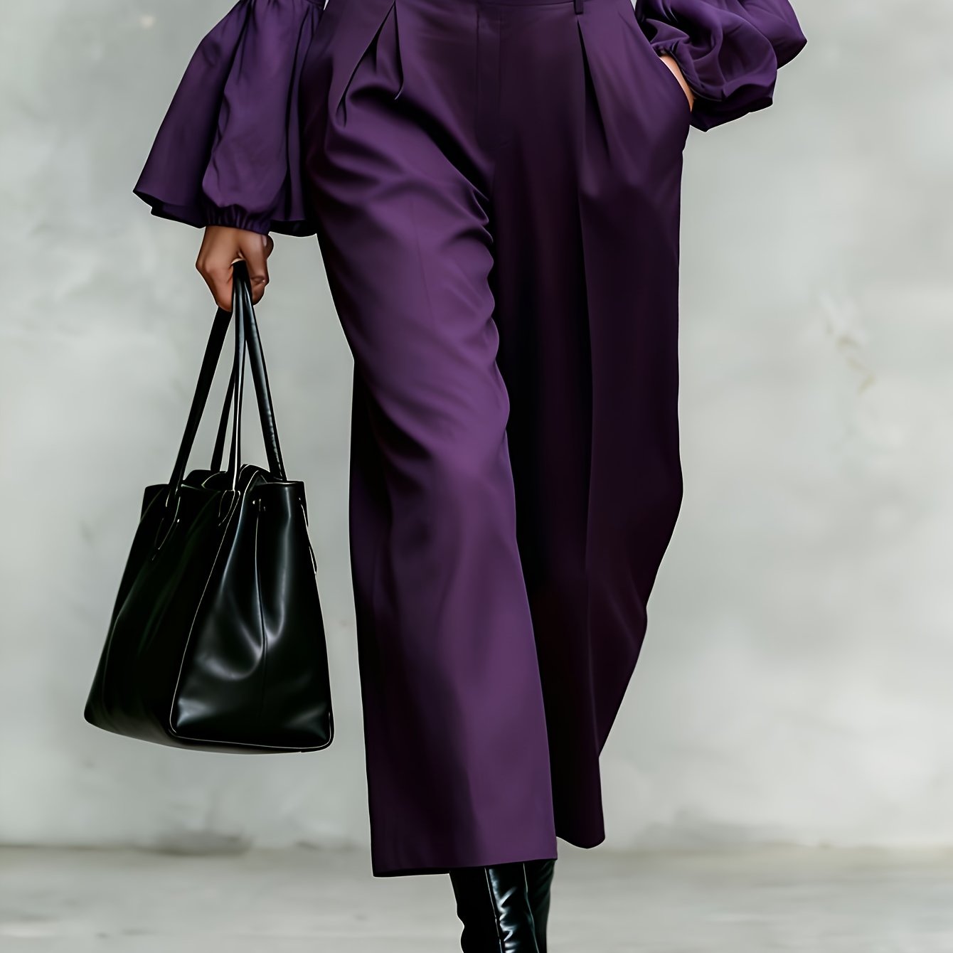 TEMU 여성용 여름 전문가용 수트 바지, 패셔너블하고 활용도 높은 하이웨이스트 단색 캐주얼 레그 와이드 레그 팬츠