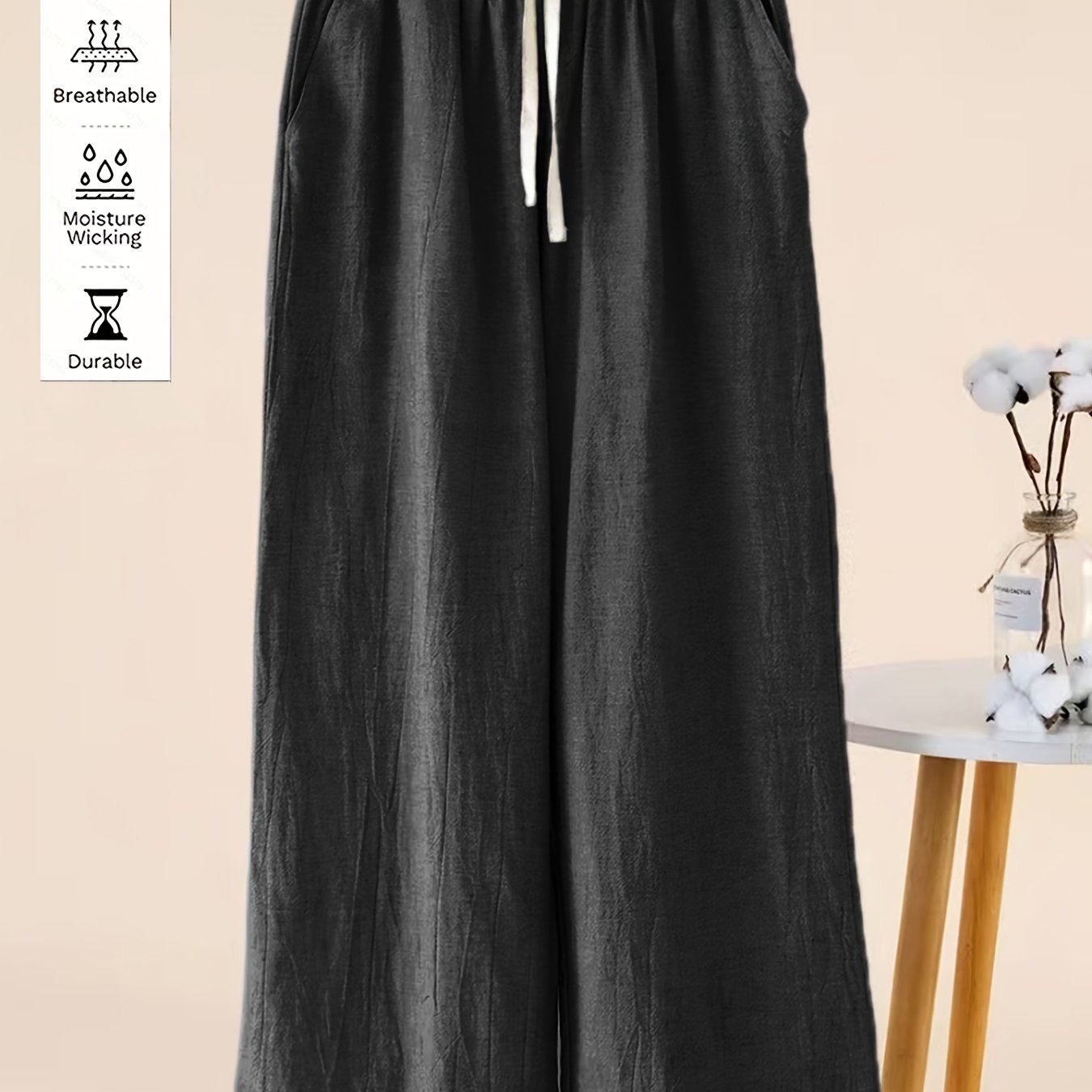 TEMU 우아한 디렉션 솔리드 린넨 통기성 좋은 와이드 레그 트라우저, 봄 여름 사계절용 편안한 외출 및 홈웨어 여성 바지