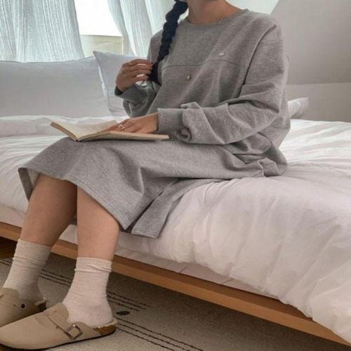 [다잇템]여자 민무늬 겨울등원룩 실내복 롱원피스